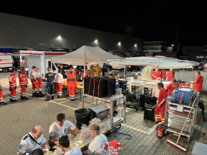 Die Aufgabe ist die Versorgung der Einsatzkräfte und Menschen in den betroffenen Notunterkünften mit Essen und Trinken in Zusammenarbeit mit den Maltesern.