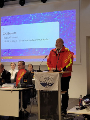 Grußworte vom Bundespräsidium der DLRG sprach Frank Villmow. Der Leiter der Verbandskommunikation überbrachte u.a. die Grüße der Präsidentin Ute Vogt und dankte für unsere Arbeit für die DLRG.